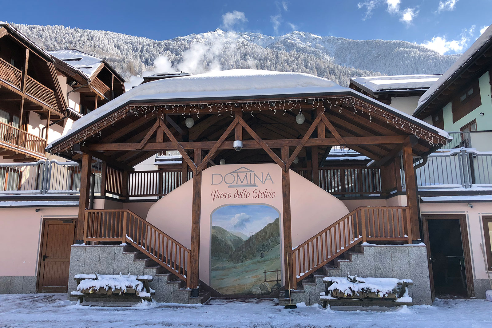 Hotel Domina Home Parco dello Stelvio to urokliwy i ekskluzywny hotel w sercu Alp, otoczony majestatycznym Parkiem Narodowym Stelvio. Położony w malowniczym miasteczku Cogolo di Peio, zaledwie 200 m od snowparku Biancaneve i 4 km od głównych wyciągów w Pejo, z bezpłatnym skibusem do Folgarida-Marilleva. Hotel oferuje różnorodne opcje zakwaterowania – od przytulnych studio, przez przestronne Family Room (do 5 osób), aż po komfortowe Junior Suite. Wszystkie pokoje urządzone są w ciepłym, drewnianym stylu alpejskim i wyposażone w łazienkę, telewizor, sejf, Wi-Fi oraz minibar. W niektórych pokojach za dodatkową opłatą dostępne są aneksy kuchenne. Niewątpliwą zaletą hotelu jest klimatyczna strefa Wellness&SPA z krytym basenem z hydromasażem, jacuzzi, sauną fińską, bio-sauną, łaźnią parową oraz pokojem relaksacyjnym. Hotel serwuje przemyślane śniadania w formie bufetu oraz czterodaniowe kolacje z wyborem regionalnych i międzynarodowych potraw. Dla rodzin z dziećmi przygotowano mini-club oraz salę zabaw, co sprawia że hotel jest odpowiedni dla par, grup przyjaciół oraz rodzin z dziećmi. Hotel Domina Parco dello Stelvio to propozycja dla osób ceniących wygodę oraz komfortowe i przestronne wnętrza z profesjonalnym serwisem i niezwykle ciepłą i serdeczną atmosferą.